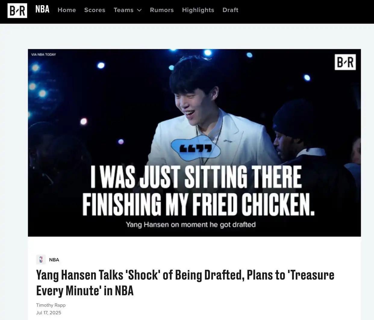 自从在选秀大会上被波特兰开拓者以第十六顺位选中以来,杨翰森便迅速成为国内篮球迷关注的焦点人物。